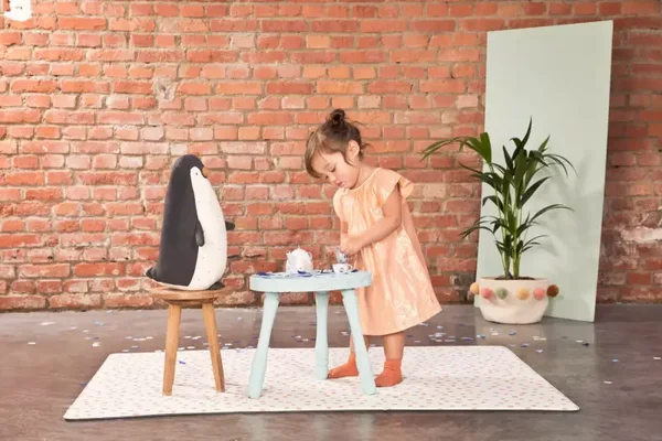 Kleurrijke en zachte vinyltapijten voor peuters die nog maar pas rollen en kruipen.