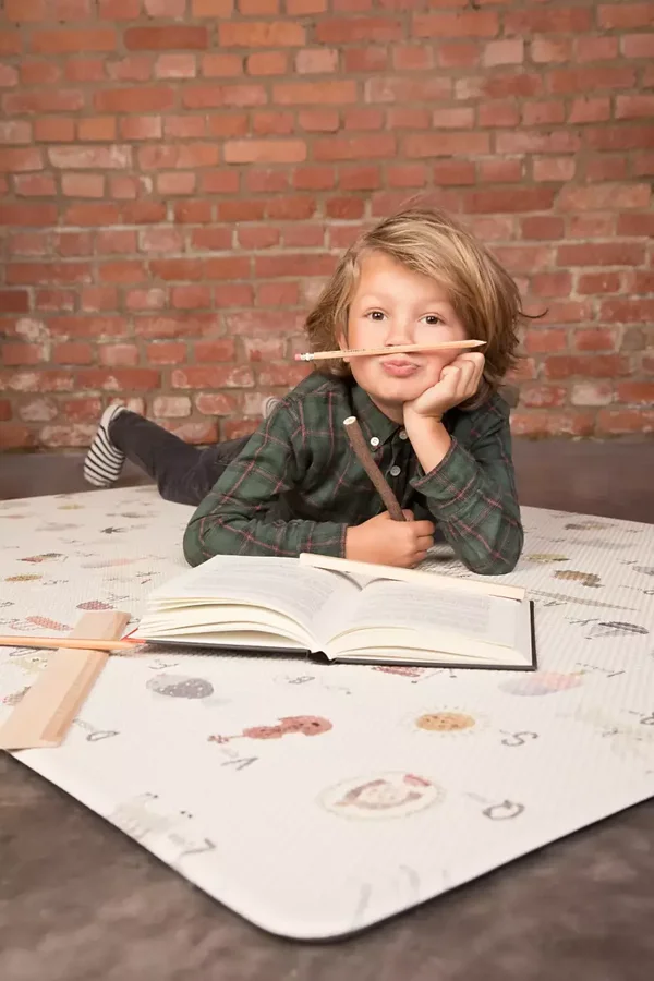 Kleurrijke en zachte vinyltapijten voor peuters die nog maar pas rollen en kruipen.