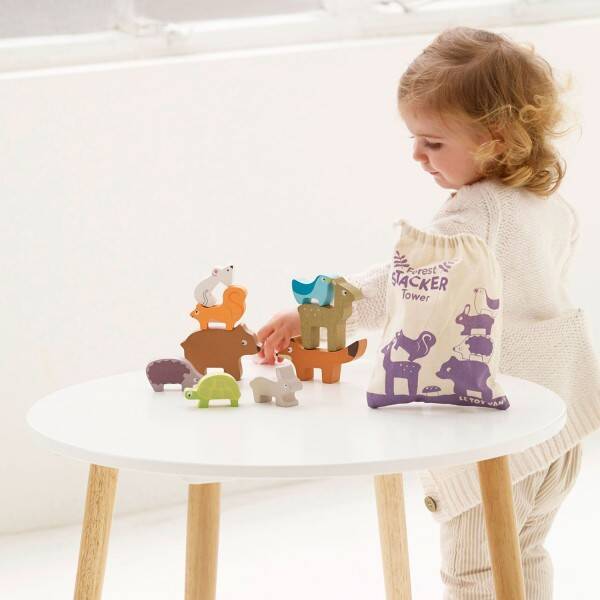 Een set van 9 houten stapeldieren, compleet met handig trekzakje om overal mee te spelen. Breng de bosdieren in balans en verfijn je coördinatievaardigheden, of gebruik ze in fantasierijke speelscenario's. Plasticvrije set gemaakt van duurzaam FSC-hout en gedecoreerd met splinterbestendige verf op waterbasis. Beer: B: 9,6 cm D: 2 cm H: 6,6 cm Tas: B: 18cm H: 23cm Beer: B: 3.7 D: 0.7 H: 2.6 inch Tas: B: 7 H: 9 inch 18+ MTHS