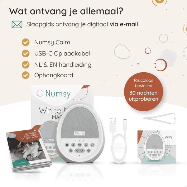 Rust, ontspanning, slaap. De Numsy Calm is dé white noise machine voor jong en oud. Dit model beschikt over meerdere handige functies. Zo luister je via de Numsy Calm naar méér dan 29 natuurlijke geluiden met white noise, waaronder baarmoeder geluiden!