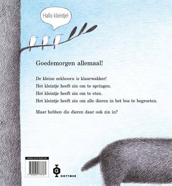 'Hallo kleintje!' is een prentenboek over een maar al te herkenbare situatie voor velen. Dit grappige verhaal gaat over een eekhoornjong met een overvloed aan energie en volwassen dieren die juist af en toe wel een beetje rust kunnen gebruiken.De ochtend is aangebroken en de kleine eekhoorn staat al in de startblokken. Het kleintje springt rond, eet zijn buikje vol en begroet luidruchtig alle dieren in het bos. Maar zijn die dieren ook zo blij om het kleintje te zien? Wanneer Uil er op een dag genoeg van heeft en zijn geduld verliest, voelt het kleine eekhoorntje zich gekwetst en verstopt zich thuis. De volgende ochtend blijft het kleintje binnen en dan beseffen de dieren dat er iets belangrijks ontbreekt in hun ochtendroutine. Het is wel heel saai zo, zonder die druktemaker...Peuters en kleuters zullen direct de speelse babyeekhoorn op elke pagina opmerken. Zijn overvloed aan energie zal kinderen bekend voorkomen. En dat de volwassen dieren soms liever wat rust willen, is voor de voorlezers ongetwijfeld heel herkenbaar. De ontroerende illustraties van kinderboekenmaker Anne Hunter - met balpen en kleurpotlood gemaakt - dragen bij aan de charme van dit humoristische prentenboek. Voor kinderen vanaf 3 jaar.
