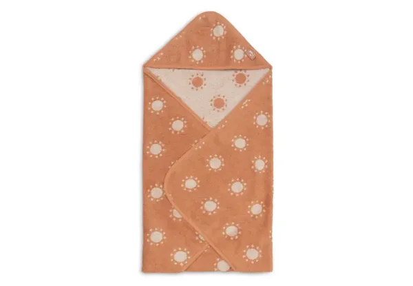 Na het badderen wikkel je je kleintje heerlijk in deze zachte badcape. De badstof neemt goed vocht op en voelt fijn aan op de huid. Met het capuchonnetje blijft het hoofdje lekker warm. Een leuk detail is dat de binnen- en buitenkant omgekeerde kleuren hebben. De buitenkant is gemaakt van zachte jersey stof met, terwijl de binnenkant is gevoerd met super zachte terry badstof.