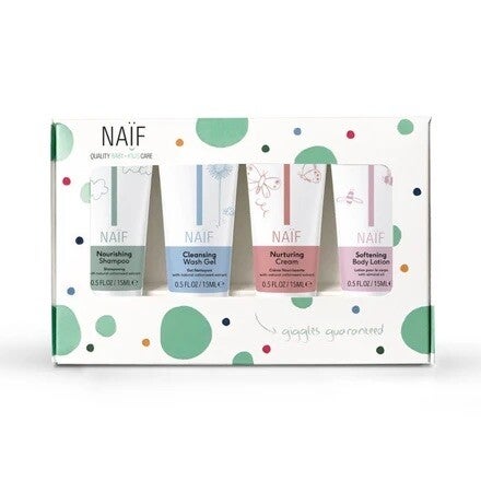 Een giftbox met 4 babyverzorgingsproducten van NAIF.