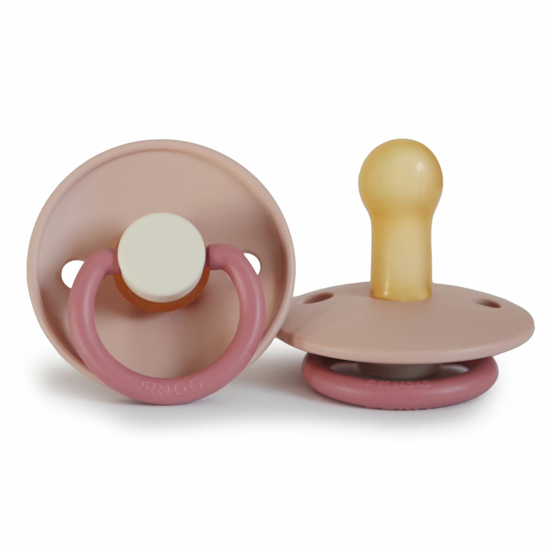 De Frigg fopspeentjes zijn gemaakt van 100% natuurlijk rubber en zijn BPA vrij. De ronde vorm van het schildje is speciaal ontworpen om de mond van je kleintje niet te irriteren.