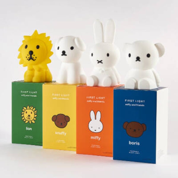 Deze mini-lampjes in de vorm van Nijntje (15 cm), Boris (10,2 cm) en Leeuw (12,6 cm) zijn de lichtpuntjes van de dag. Ze zijn gemaakt van zacht siliconen en bevatten een klein batterijtje om het LED lampje te doen schijnen.