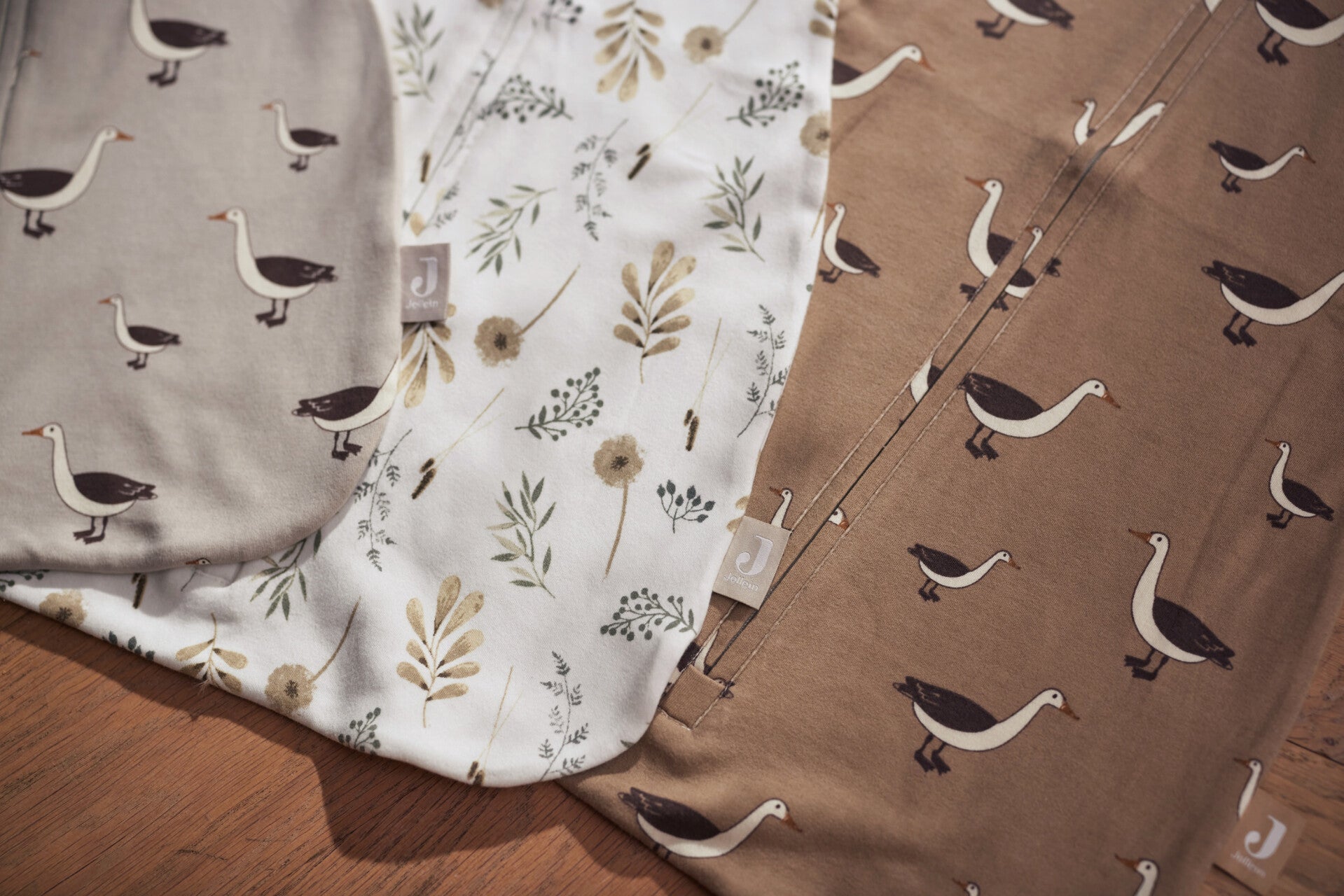 Natuurlijk wil jij wel inbakeren in stijl. Dat kan met dit vrolijke inbaker slaapzakje met lieve gansjes. Het slaapzakje heeft gesloten armsgaten waardoor je baby echt ingebakerd zit en zichzelf niet wakker kan slaan met de armpjes.