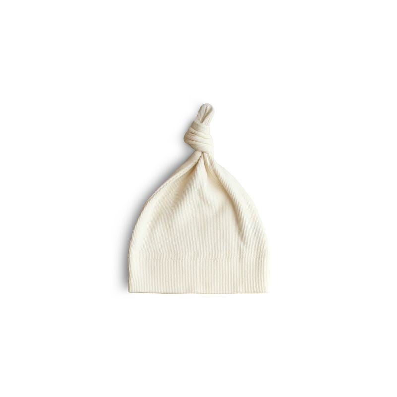 Baby beanie muts Ivory van MUSHIE is gemaakt van 100% biologisch katoen en geschikt voor pasgeboren baby's tot 3 maanden. Dit knoopmutsje past goed bij de baby knoop romper uit dezelfde collectie en mag niet ontbreken in je baby's kraamkoffer.